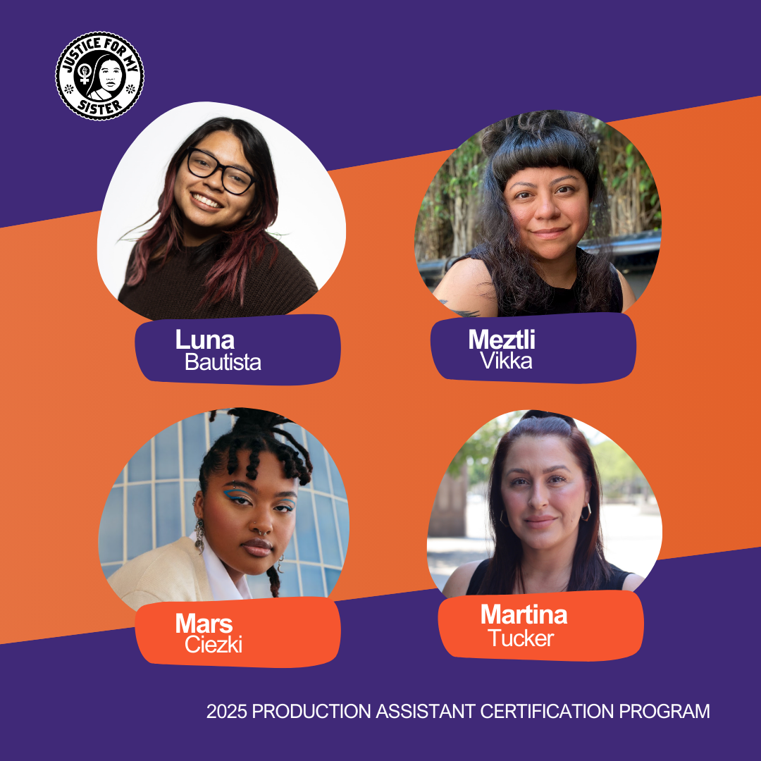 Justice for My Sister has created and launched a one-of-a-kind Production Assistant Certification Program exclusively for filmmakers of color. The second cohort, of 30 fellows, will participate in an 8-week curriculum followed by job placement opportunities for participants based in the greater Los Angeles area. Graduates from Justice for My Sister’s PA Certification Program will go on to obtain crew positions on JFMS-produced content, as well as positions on networks such as WarnerMedia and production companies such as Blumhouse Productions.