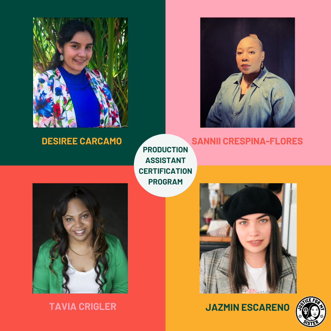 Justice for My Sister has created and launched a one-of-a-kind Production Assistant Certification Program exclusively for filmmakers of color. The inaugural cohort, of 31 fellows, will participate in an 8-week curriculum followed by job placement opportunities for participants based in the greater Los Angeles area. Graduates from Justice for My Sister’s PA Certification Program will go on to obtain crew positions on JFMS-produced content, as well as positions on networks such as WarnerMedia and production companies such as Blumhouse Productions.